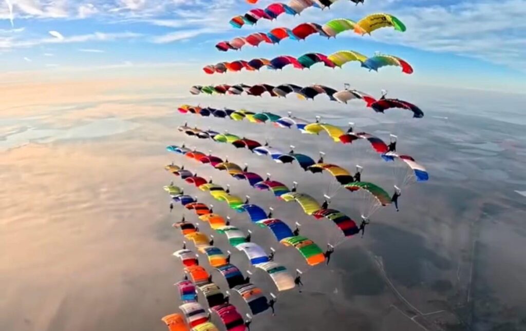 Flórida (EUA) – Um espetáculo aéreo chamou atenção do paraquedismo mundial em novembro de 2025. Ao todo, 104 paraquedistas completaram uma formação na modalidade Canopy Relative Work (CRW), conectando velames já abertos com alto nível de precisão e controle, durante uma janela de saltos no feriado de Thanksgiving (Ação de Graças) na Flórida, nos Estados Unidos.