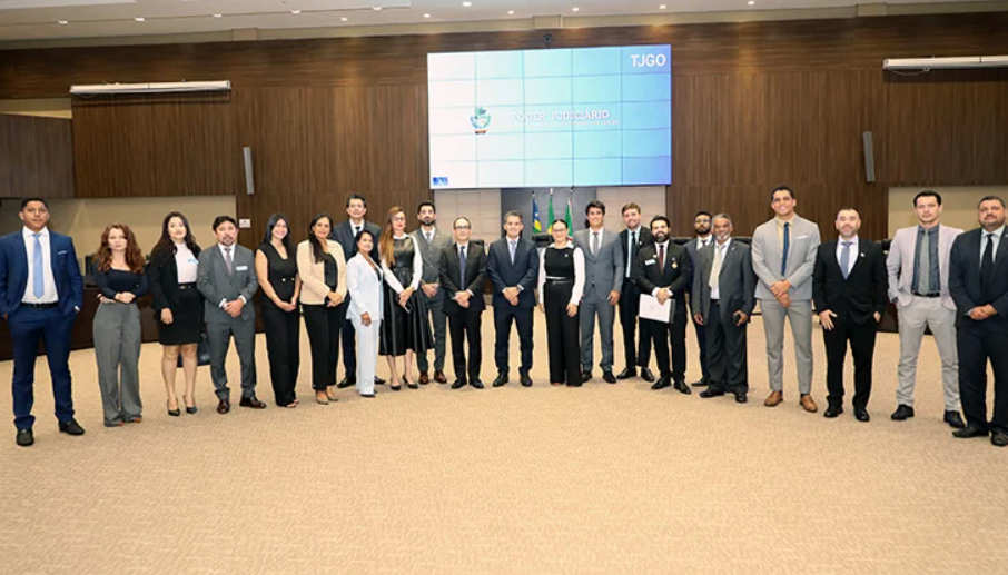 Durante a visita, o grupo conheceu o Plenário Desembargador Homero Sabino e recebeu informações sobre a estrutura e a história do tribunal. O TJGO informou que foram apresentados dados institucionais, como a organização da corte em 11 câmaras cíveis, quatro câmaras criminais e 115 comarcas, que somam cerca de 450 unidades judiciais em todo o estado.